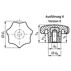 Ausführung K: mit verzinkter Stahlgewindebuchse. * Bei Größe M4 mit Messinggewindebuchse.